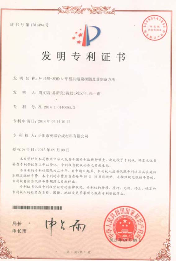 專(zhuān)利一:環(huán)己酮-雙酚A-甲醛共縮聚樹(shù)脂及其制備方法
