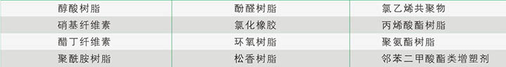 INT 8605樹(shù)脂與絕大多數用于涂料/油墨的樹(shù)脂有良好的相容性。包括下列樹(shù)脂: