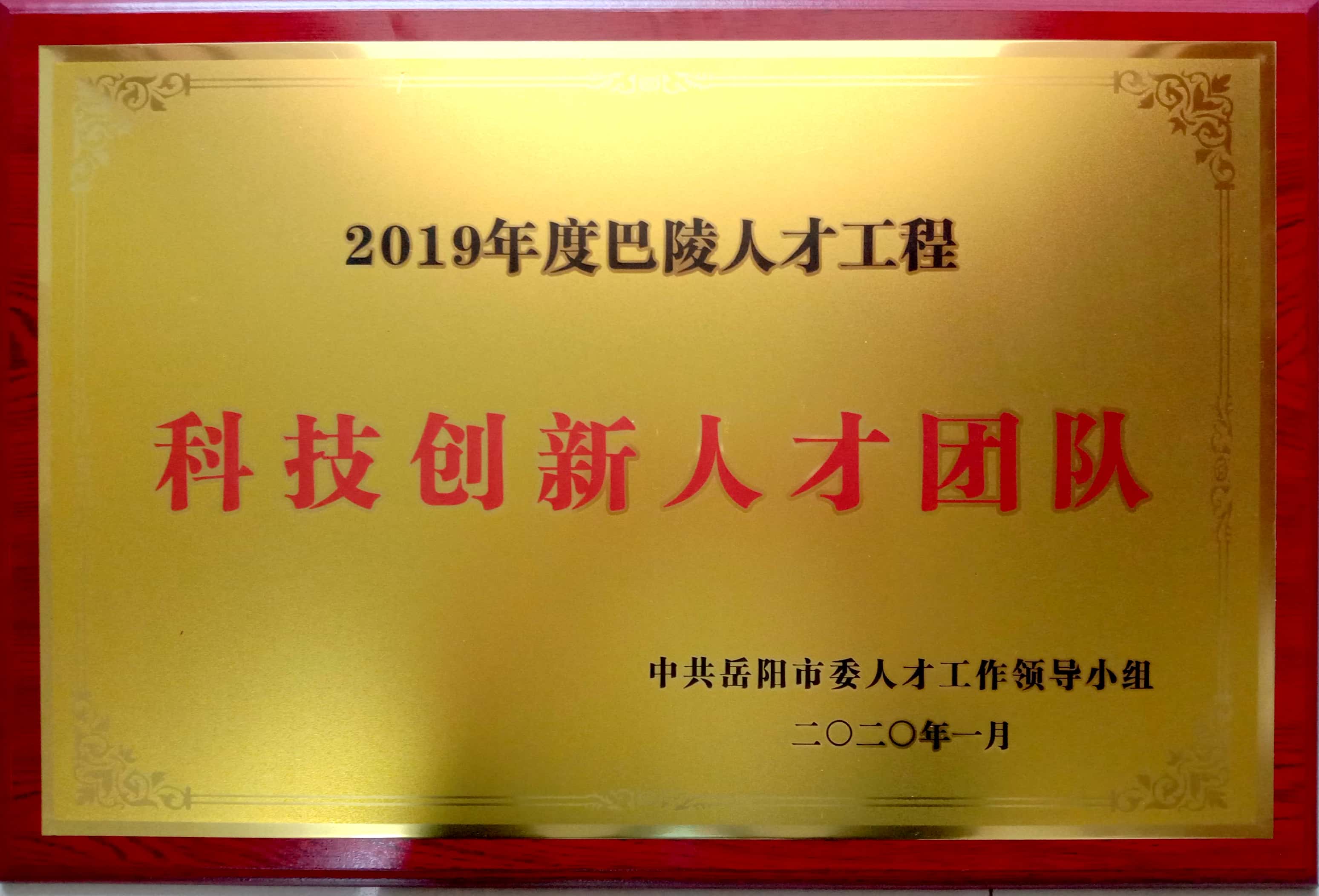 公司榮獲2019年度巴陵人才工程“科技創(chuàng )新人才團隊”獎項。