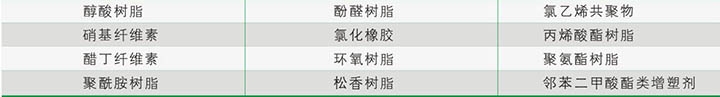 INT 8601樹(shù)脂與絕大多數用于涂料/油墨的樹(shù)脂有良好的相容性。包括下列樹(shù)脂: